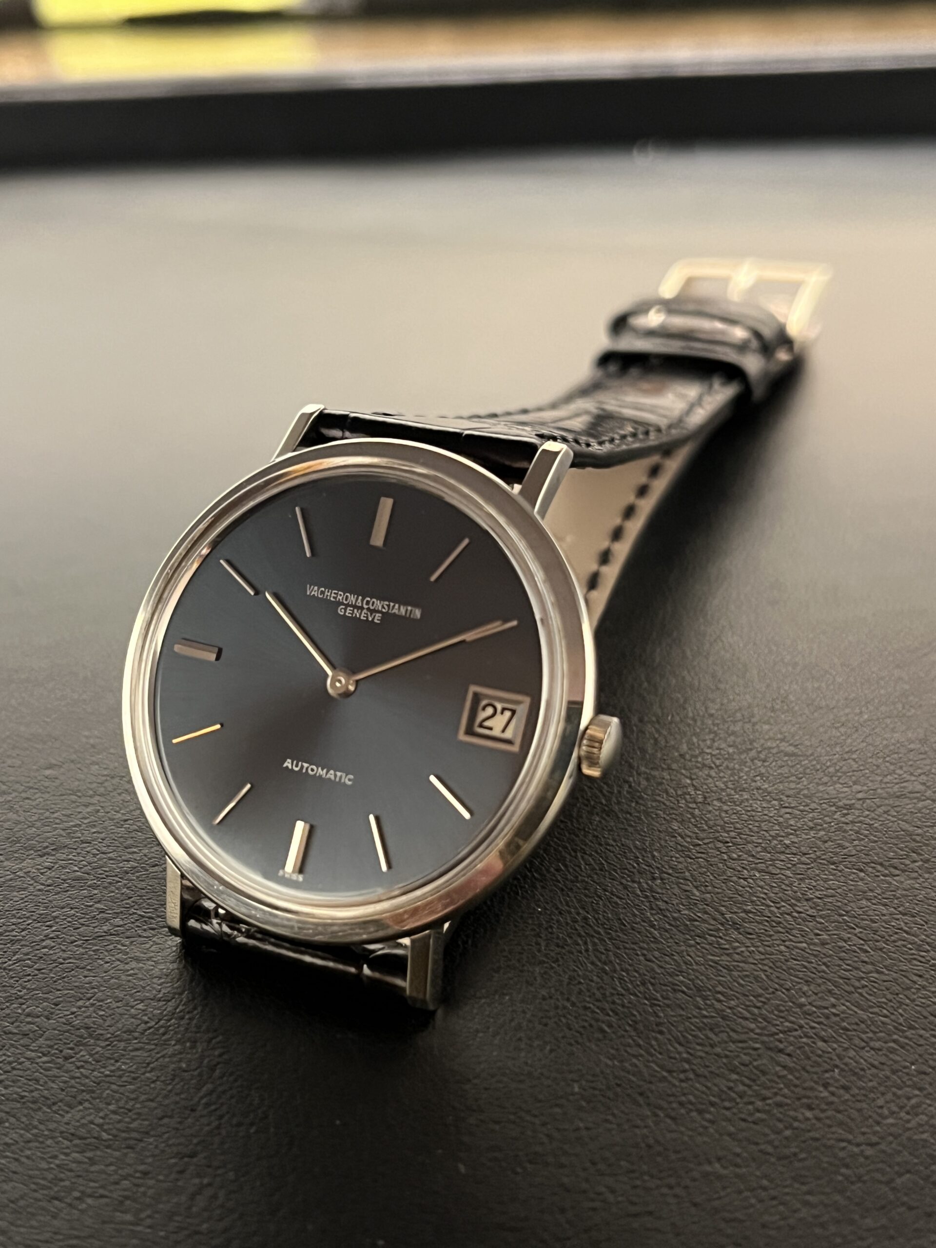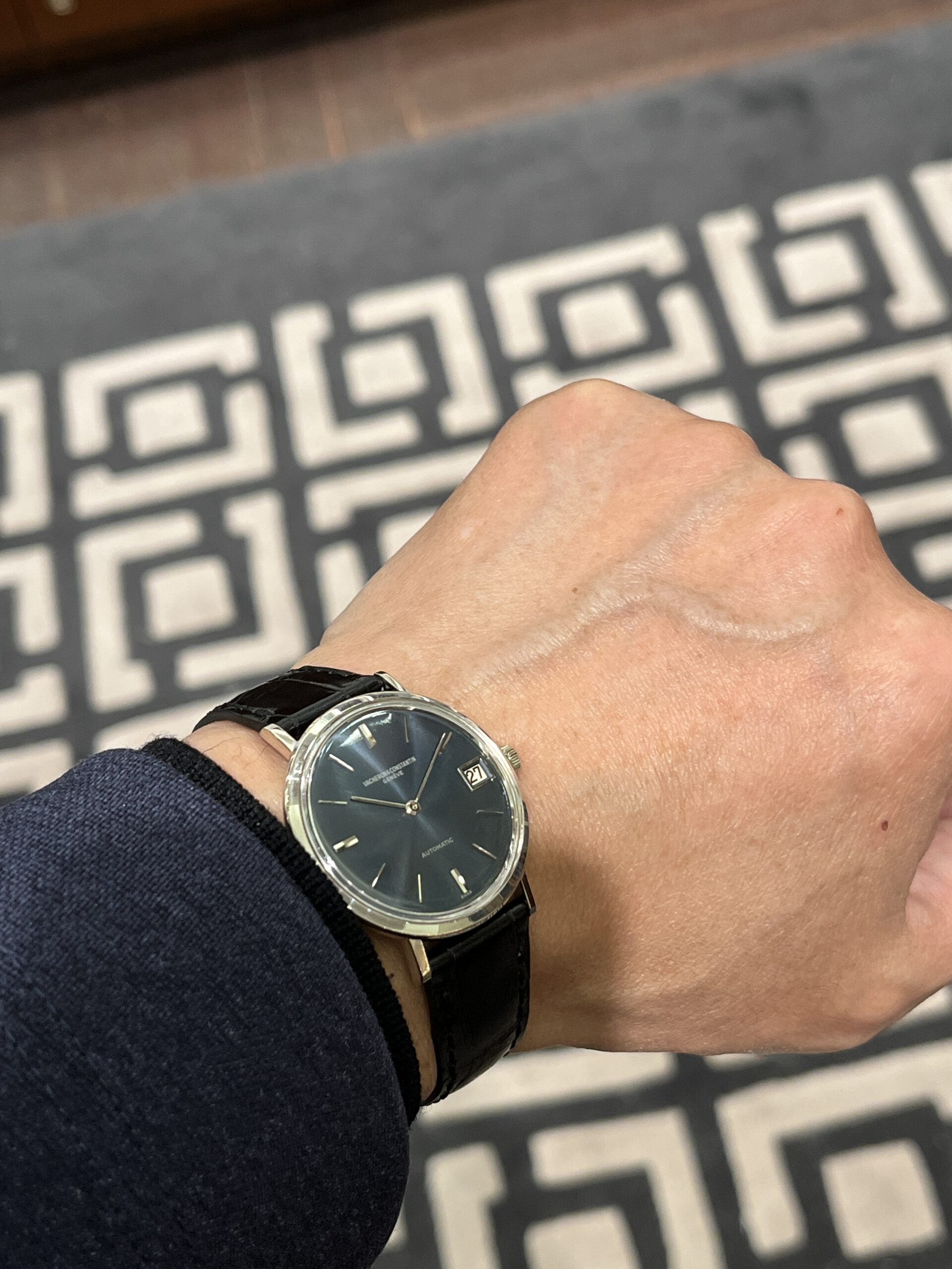 このヴァシュロンは薄型2針ですが、自動巻き機能とデイト表示を兼ねそろえた優れモノです。