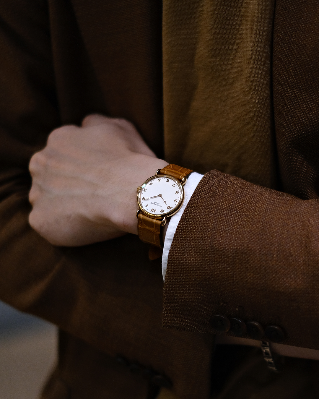 ブレゲインデックス&ハンド、ティアドロップ型のラグが目を引くパテックフィリップです。肌馴染みの良い18KPGのケースと32㎜のサイズ感は、男性のみならず女性にもおすすめです。もちろんアーカイブも付属します。