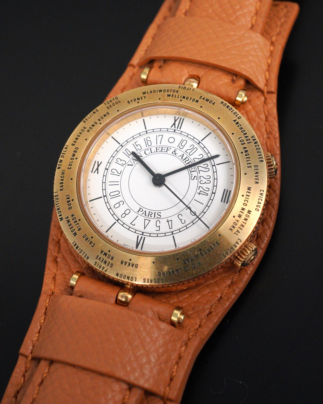 ヴァンクリーフ&アーペル トラベラーワールドタイムアラーム付き 1990年代 18KYG 36㎜ 手巻き