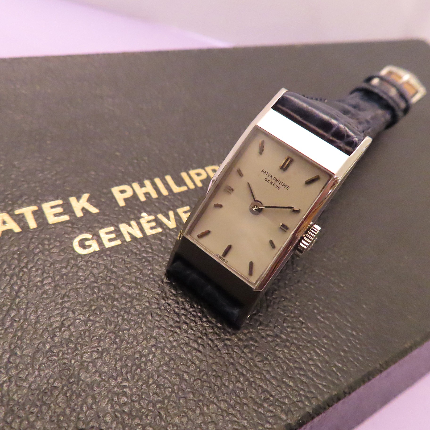 端正なレクタングラーケースが印象的なパテックフィリップのアワーグラス。