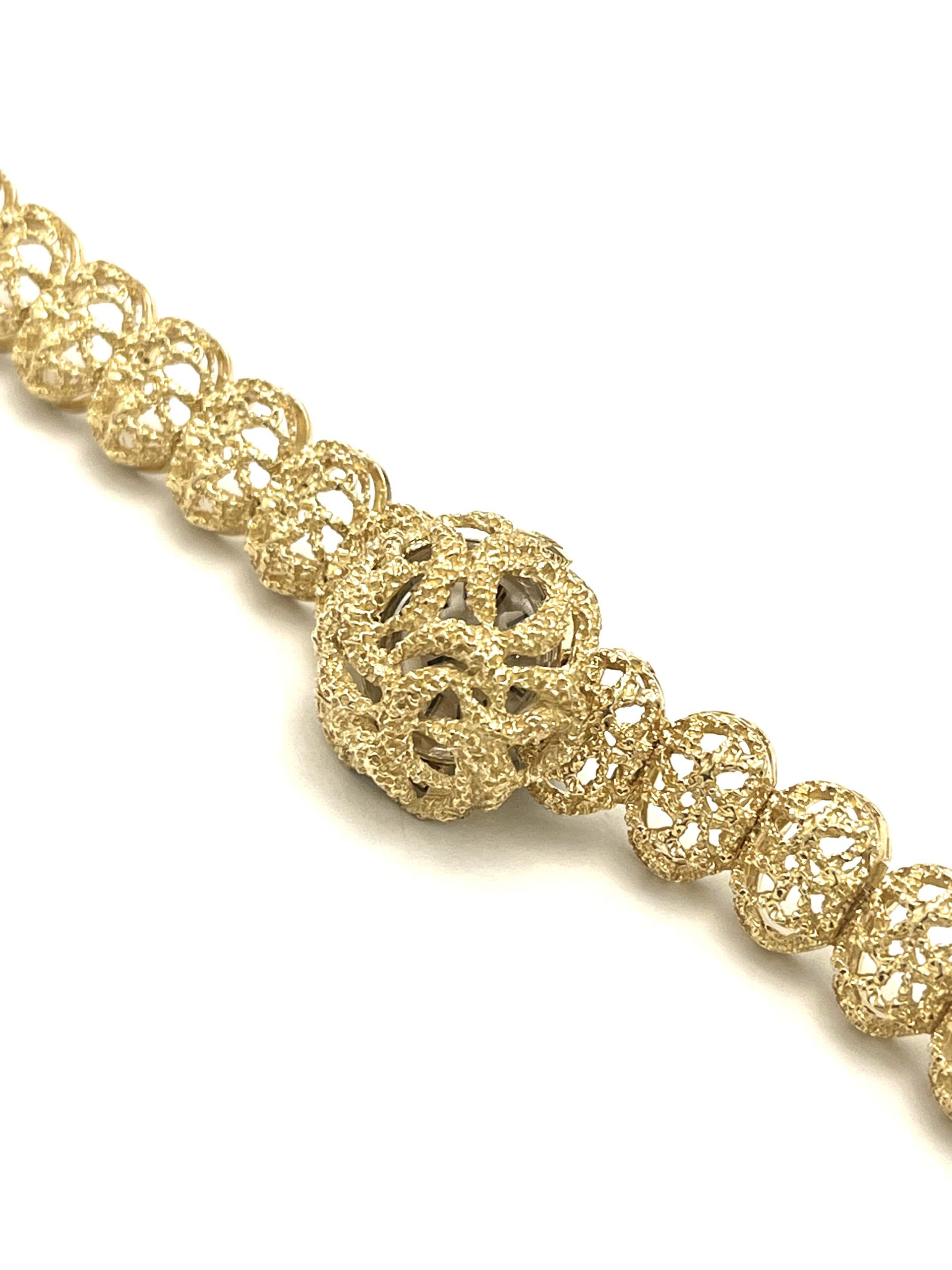 ブレスレットは裏表で異なる仕上げが施されています。表は打痕の様な凹凸模様が細かく施されており適度に艶が抑えられています。一方裏は装着した時に滑りが良いように艶加工がされています。手間と労力をかけて作られている事が見て取れます。